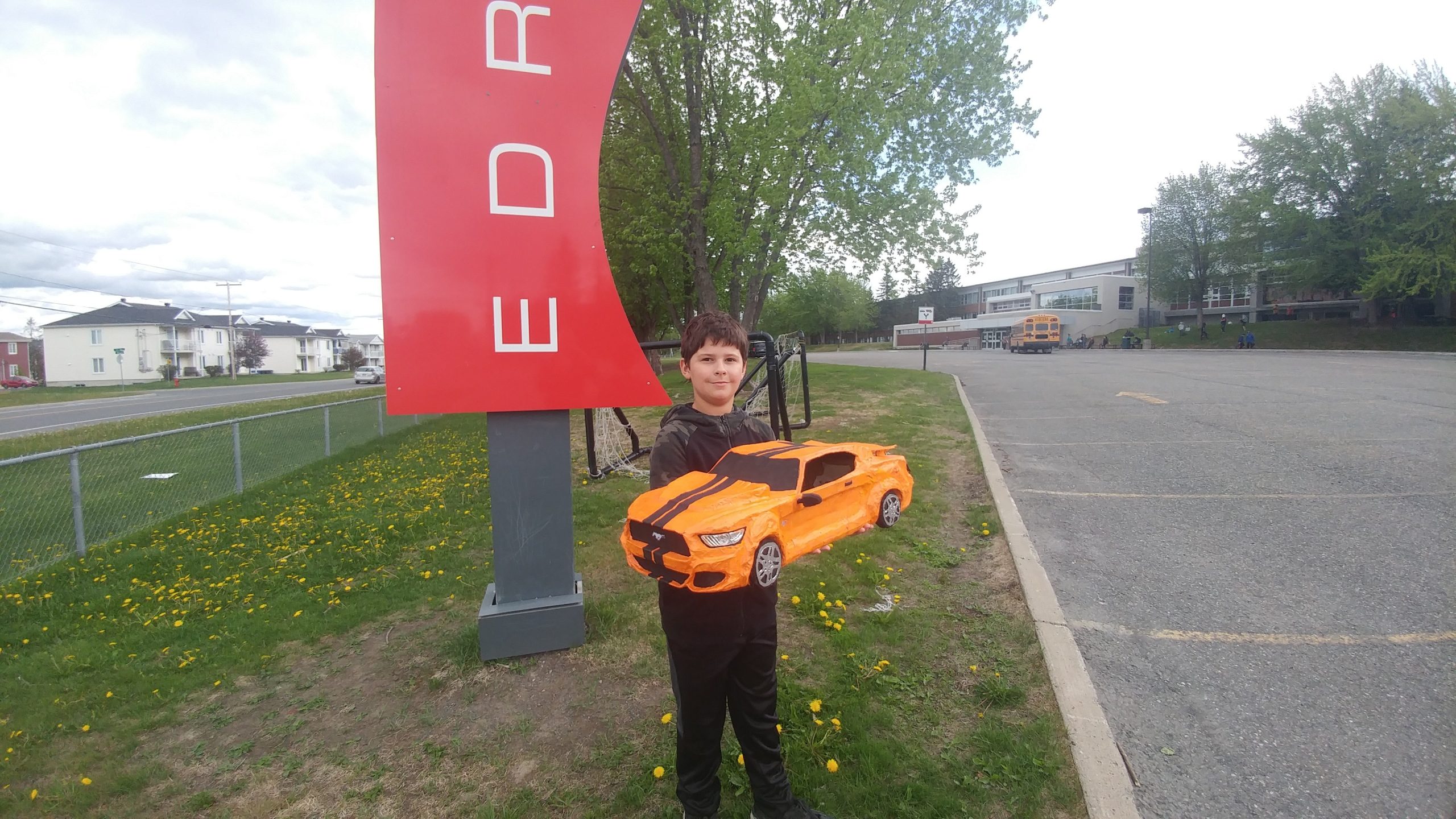 Deux élèves de l’école des Deux-Rives de Saint-Georges, Adam Arraji et Keven Boulet, ont recréé une Mustang 2017 en modèle réduit dans le cadre d’un projet d’arts plastiques.