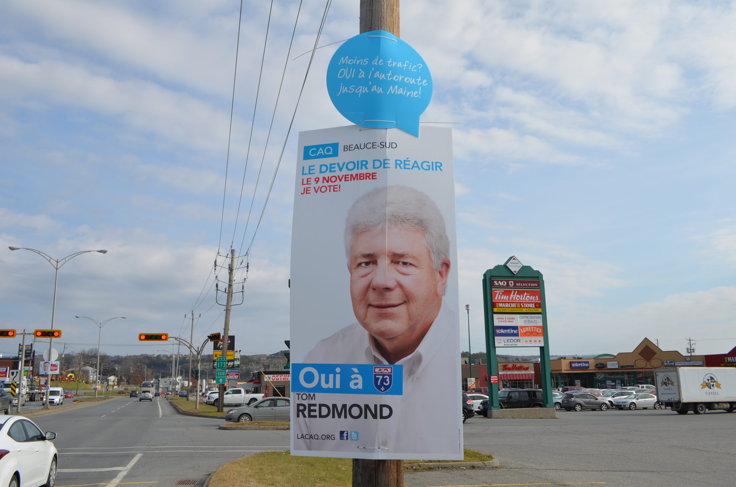Près de deux semaines après les élections partielles du 9 novembre dans Beauce-Sud, des bulles de la Coalition Avenir Québec (CAQ) n’avaient toujours pas été retirées dans les rues de Saint-Georges.