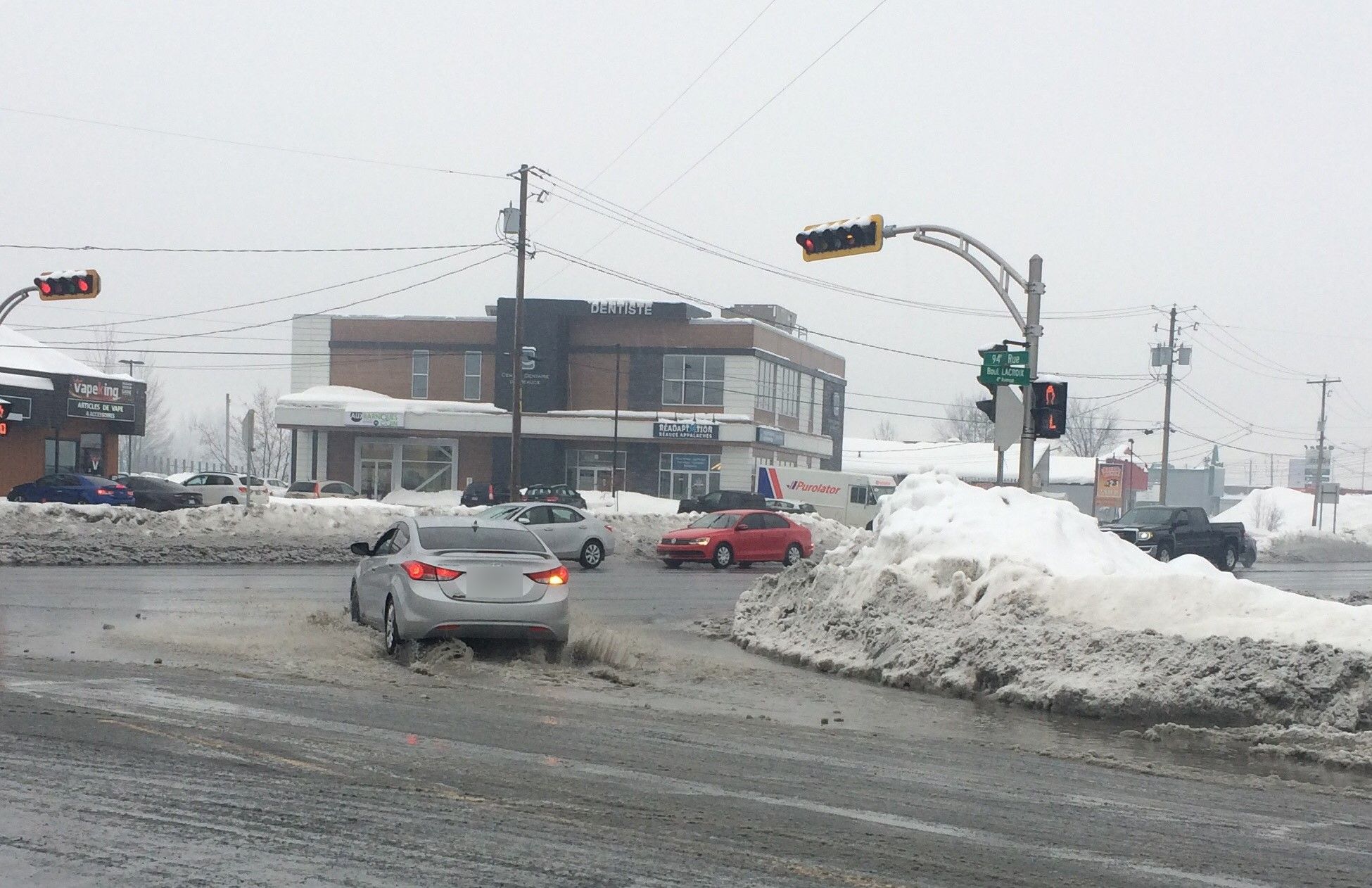 Il a tellement plu dans les dernières heures que les bouches d’égout peinent à recueillir toute l’eau, ce qui cause de très nombreux trous d’eau sur le réseau routier, que ce soit à Saint-Georges ou dans les autres municipalités du sud de la Beauce.