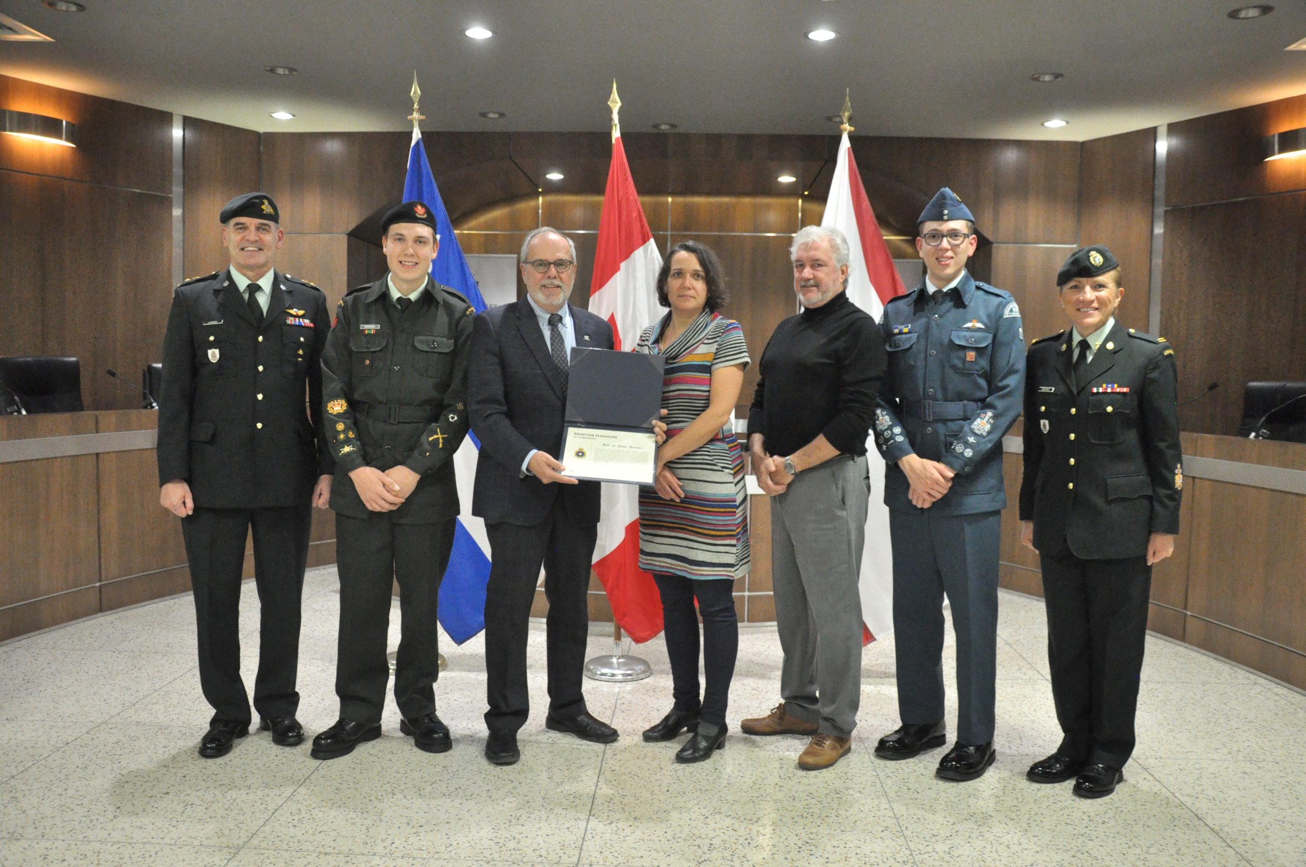 Il s’agit de la deuxième fois que cet honneur est remis à une ville, après Brossard. «Votre soutien inconditionnel à l’atteinte de notre mission permet à nos jeunes cadets non seulement de s’épanouir, mais de se préparer adéquatement à relever les défis d’une société moderne en tant qu’adulte», a mentionné le major Jean-François Maheux, soulignant du même coup l’engagement «des membres actuels et passés du conseil municipal» qui a permis au programme des cadets de connaître du succès.