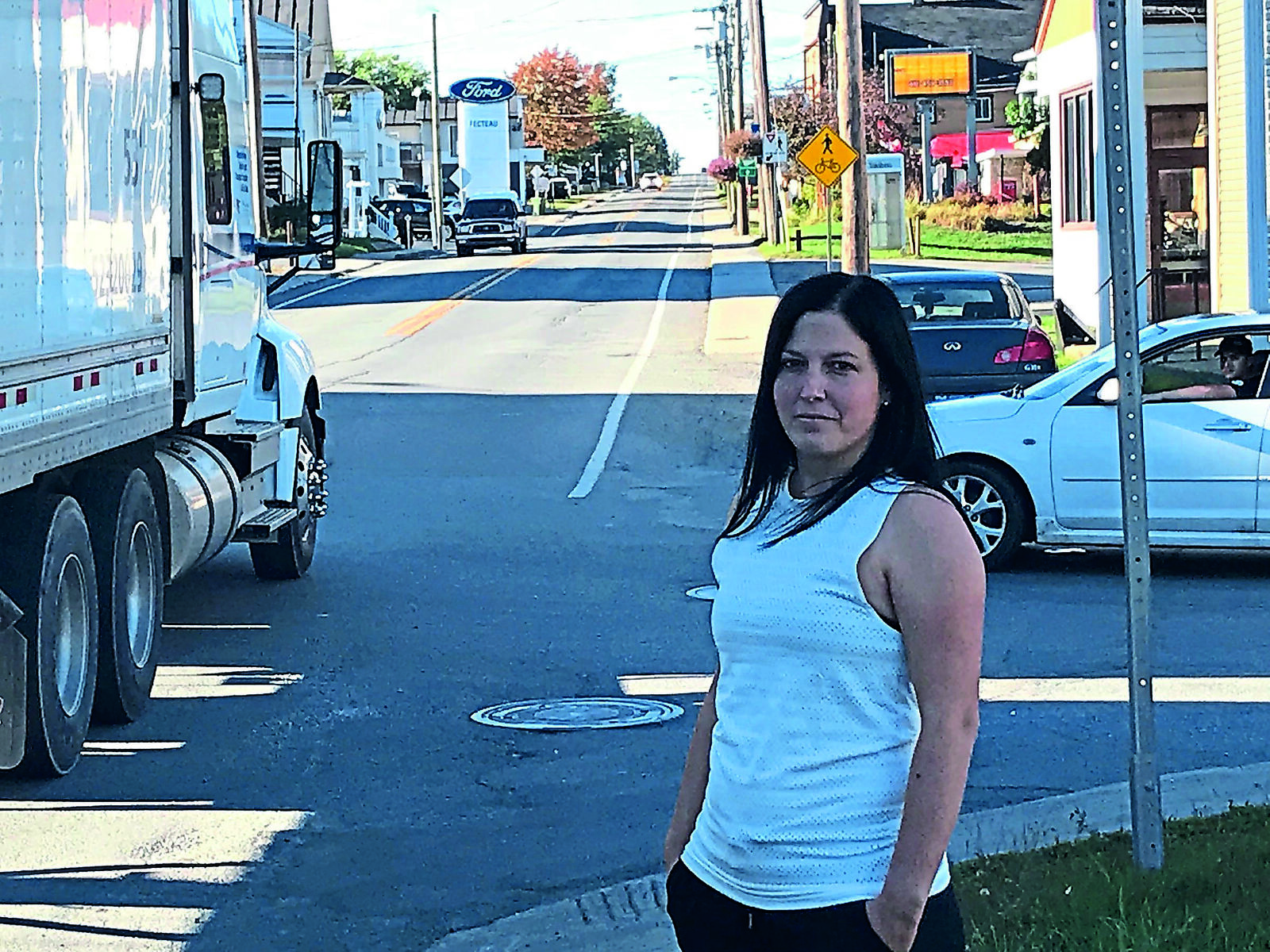 La mère de cinq enfants trouve inconcevable que sa plus jeune fille, âgée d’à peine six ans, doive se rendre à l’école à pied, même si elle est située tout près. Le hic, c’est que les élèves doivent circuler sur la route 108 et la traverser. Selon Mme English, il s’agit d’une route très passante sur laquelle circulent de nombreux poids lourds et les limites de vitesse ne sont pas toujours respectées. De plus, il n’y a pas de brigadier à l’une des intersections. Elle craint donc pour la sécurité des enfants, principalement des plus jeunes étant au premier cycle du primaire.