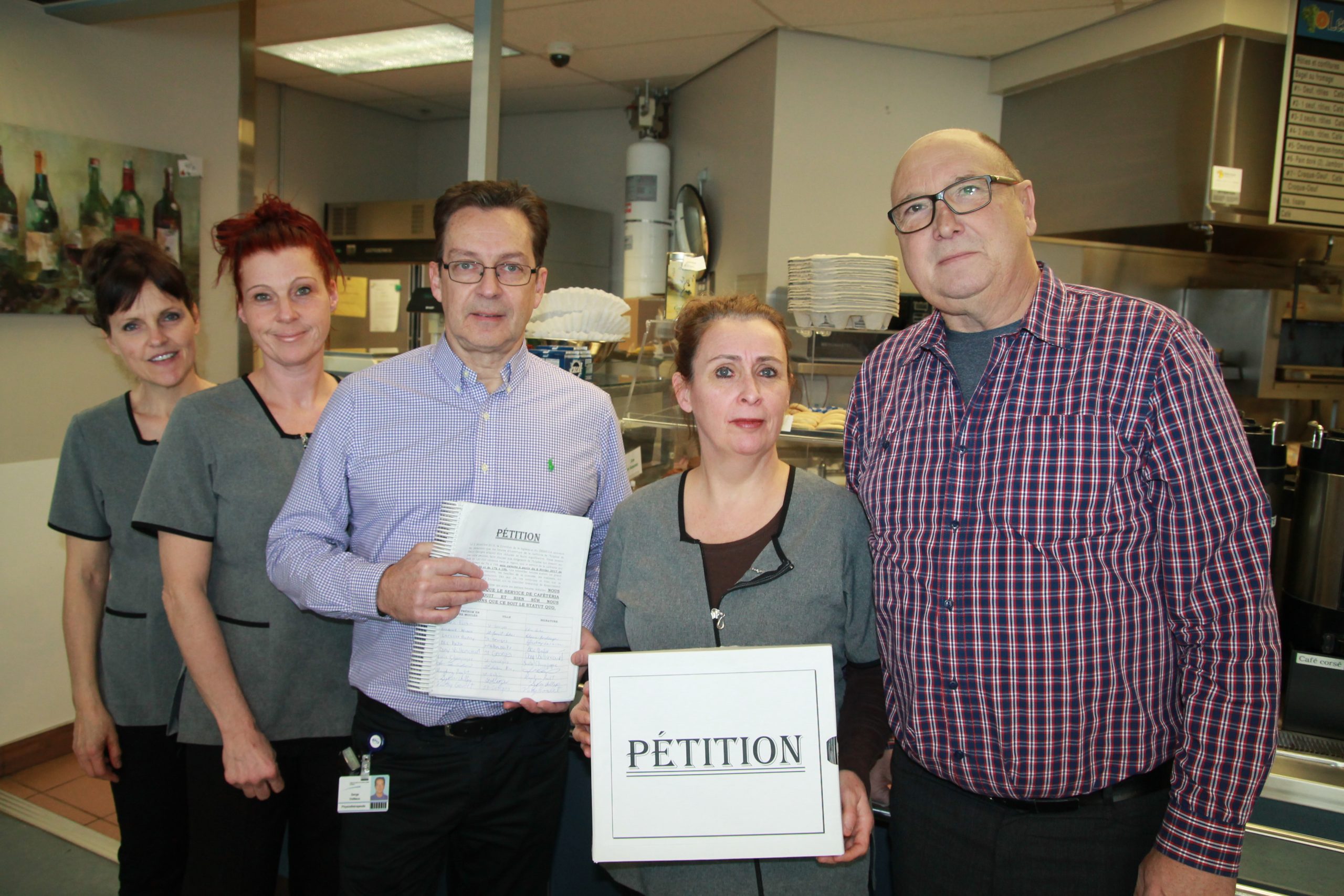 Une pétition de plus de 3100 noms a été déposée mercredi afin d’inviter le Centre intégré de santé et de services sociaux de la Chaudière-Appalaches à reconsidérer sa décision de sabrer dans les heures de services de la cafétéria de l’Hôpital de Saint-Georges.