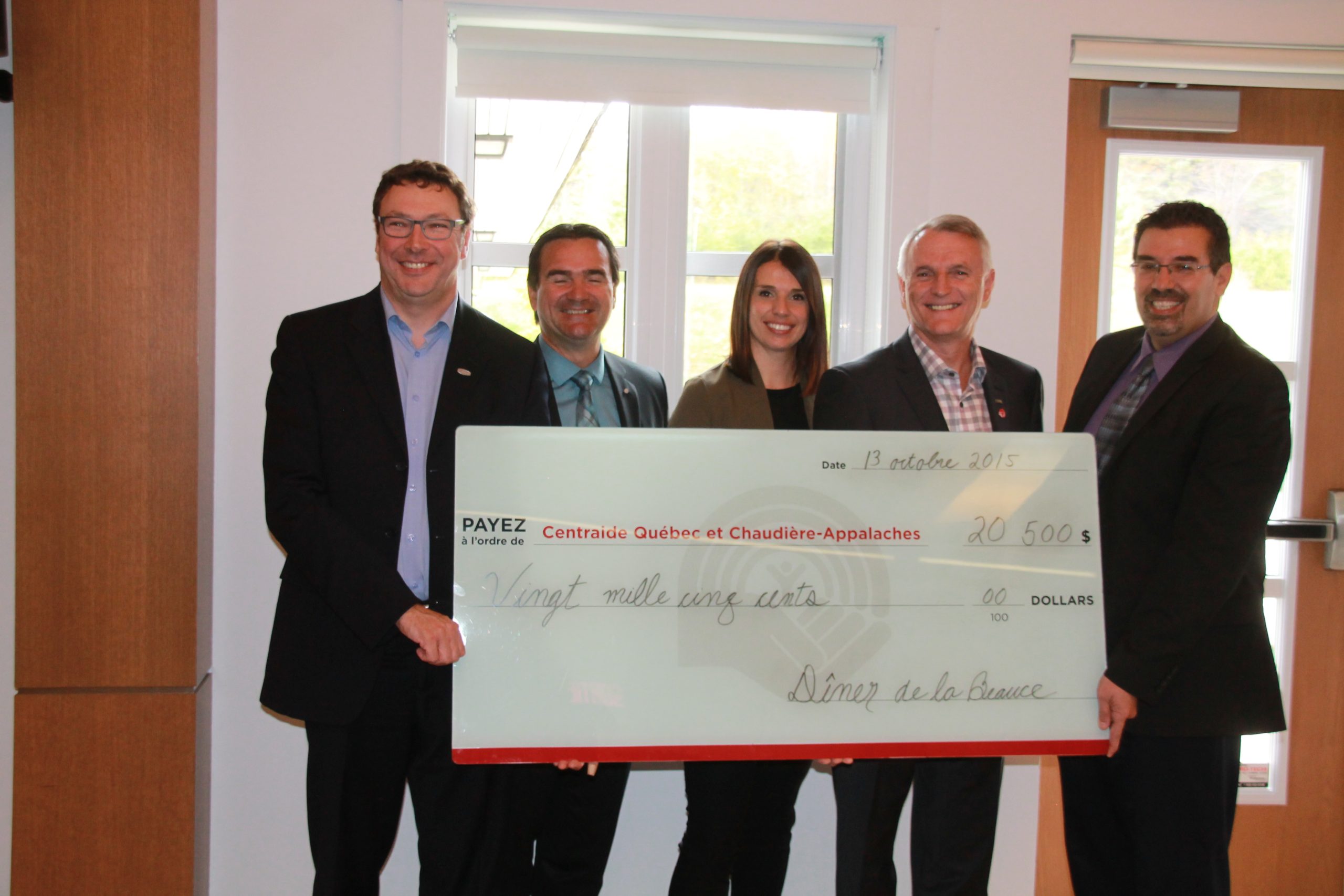 Un des membres du cabinet de campagne, Daniel Paré qui est aussi président-directeur général du Centre intégré de santé et des services sociaux de Chaudière-Appalaches, a rappelé que les dons effectués sont réinvestis ici sur le territoire. L’an dernier seulement, Centraide a versé 658 640 $ à 19 organismes beaucerons qui offrent des services essentiels (46 %), brisent l’isolement social (28 %) et favorisent la réussite des jeunes (26 %). En revanche, les dons en Beauce-Les Etchemins ont atteint 385 840 $ en 2014 soit en hausse de 30 % depuis 2011. L’objectif est de recueillir près de 400 000 $ pour la campagne 2015.