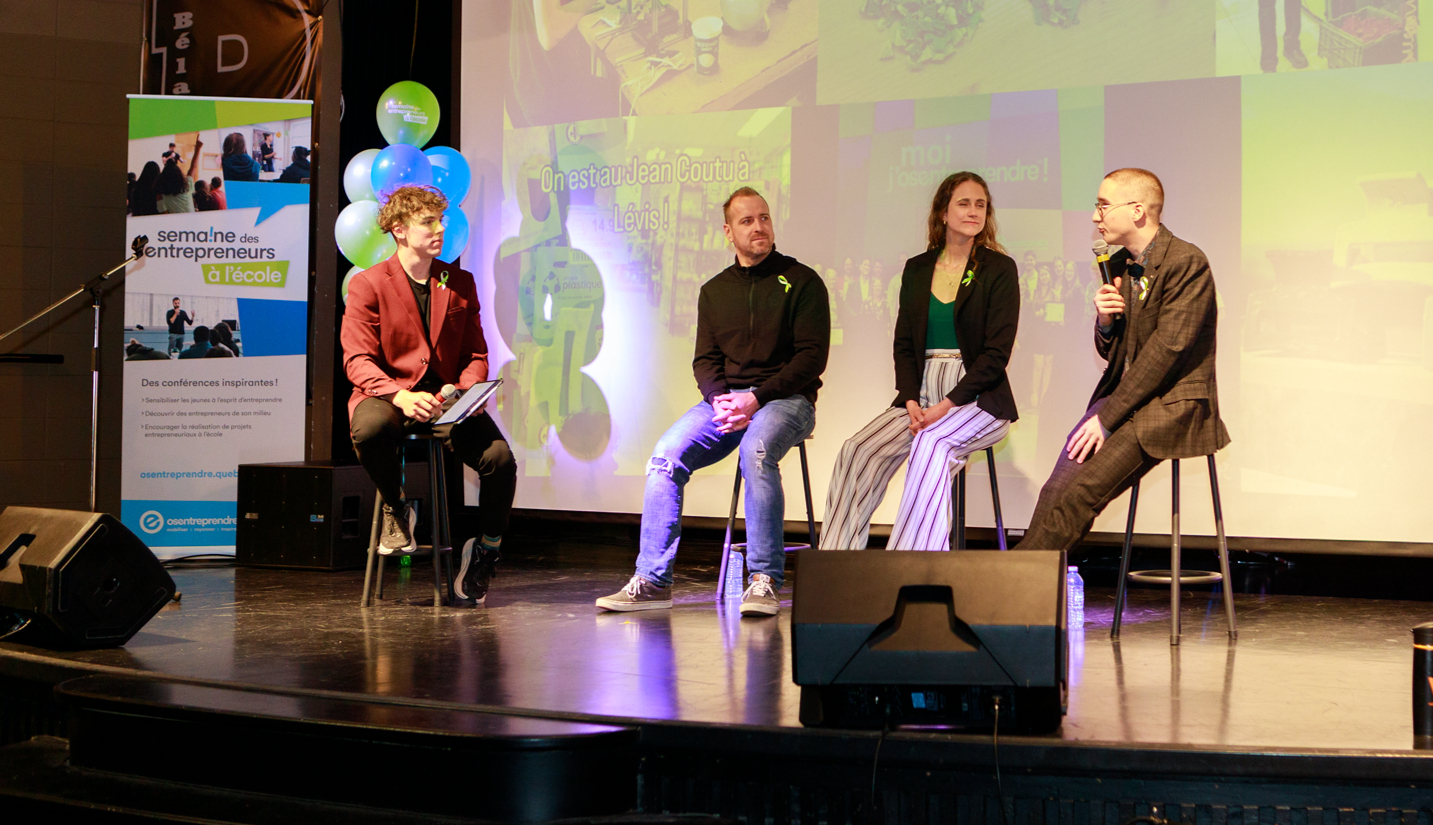 Marc-Étienne Faucher, de La Noix d’Érable, Jenny Dumont Blais, de Topo Escalade, Alexandre Tanguay, d’Unique Plastique, Magalie Thivierge, du Centre l’Empreinte du Bonheur, et Kassandra Bilodeau, de KBcreation, ont ainsi partagé leur parcours d’affaires avec les élèves.