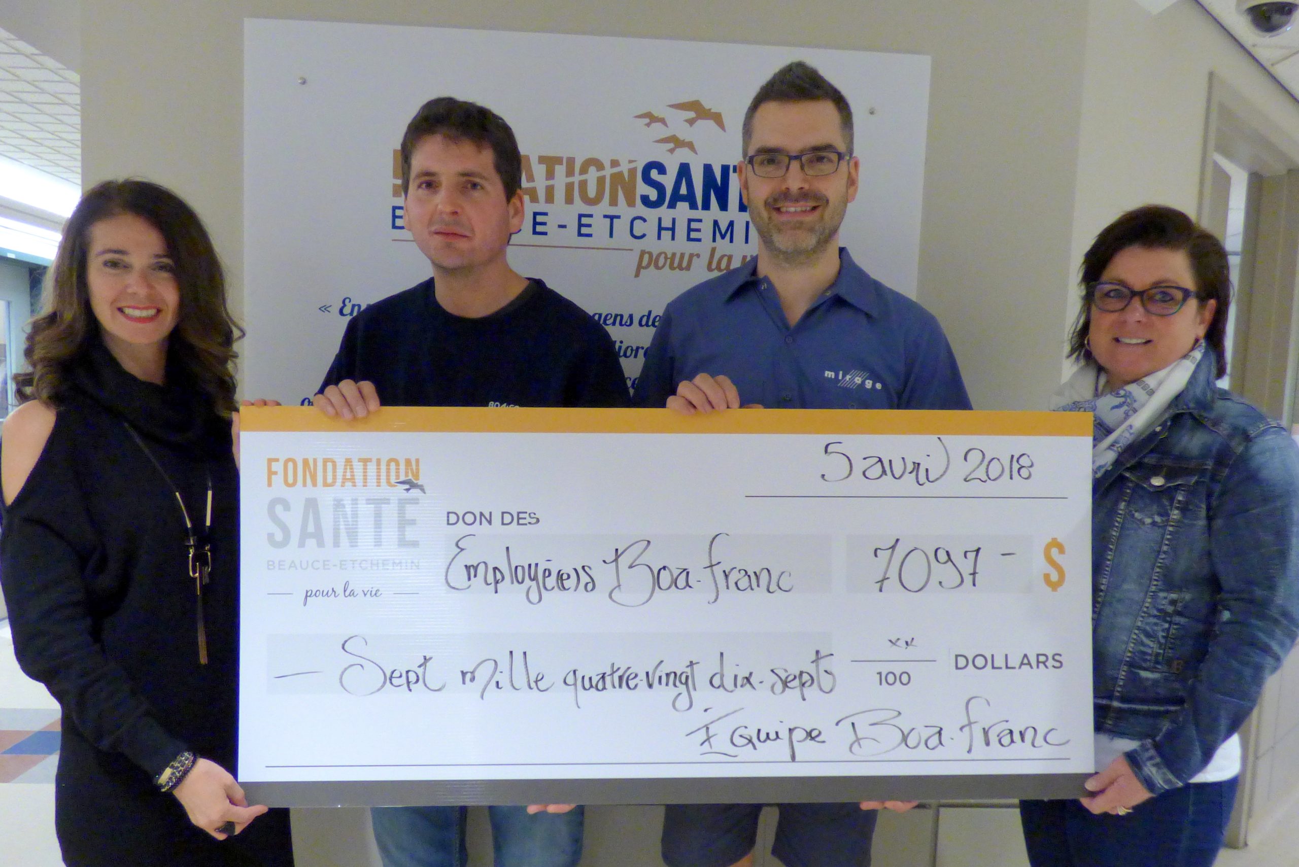 Les employés de Boa-Franc ayant souscrit au programme du Fonds employé(e)s ont remis un peu plus de 7 000 $ à la Fondation Santé Beauce-Etchemin.