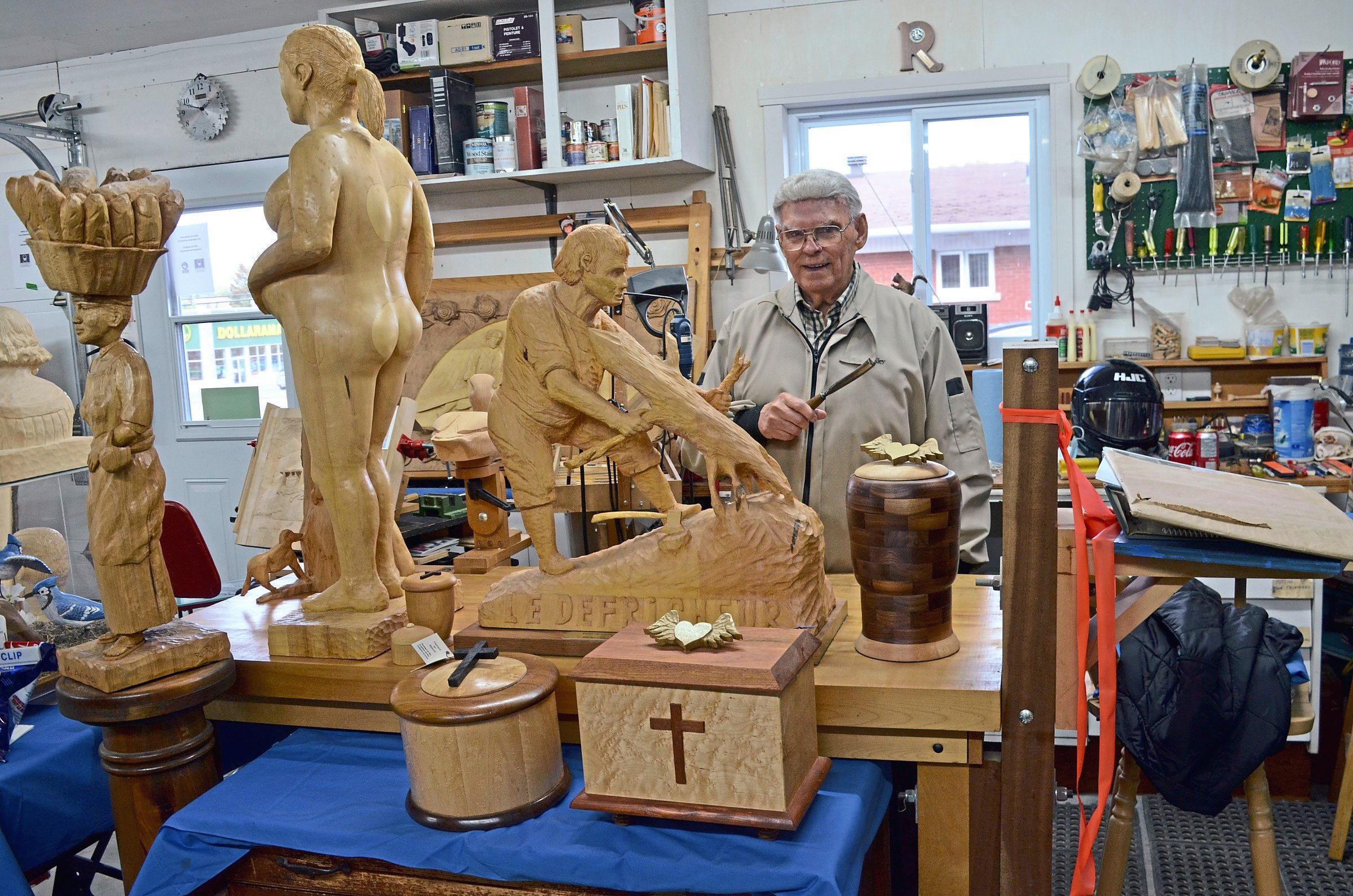 René Bérubé, vétéran de la sculpture et du tournage sur bois, a déménagé son atelier de Saint-Martin à Saint-Georges. Son talent à ciseler et tailler des pièces impressionne toujours les visiteurs, qui étaient nombreux lors de notre passage le 2 octobre.
