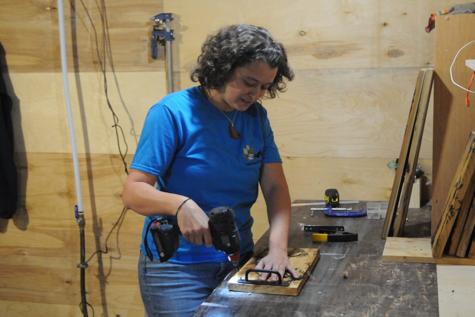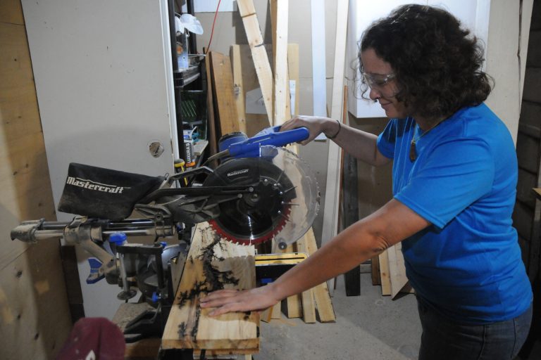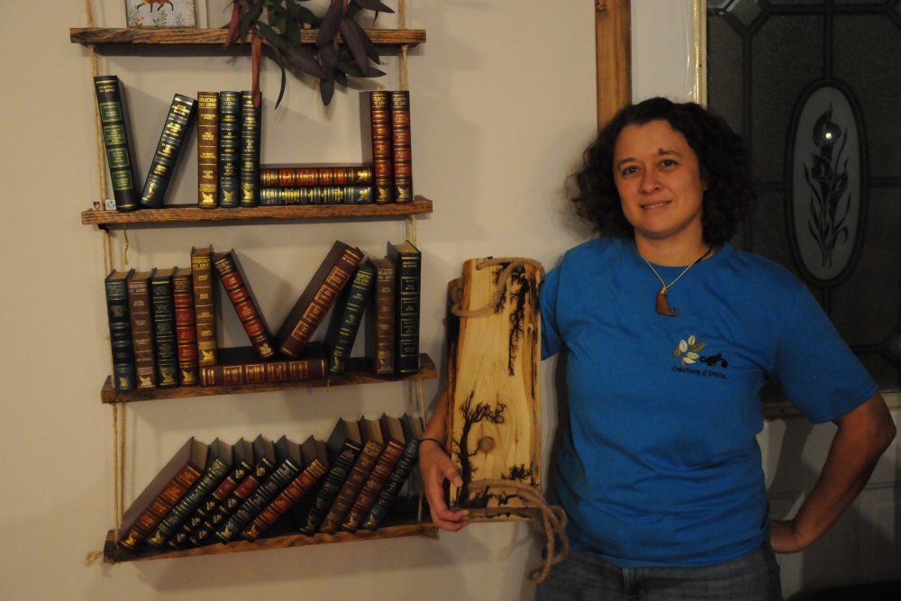 « Je fabriquais déjà des choses à titre personnel, comme des tables de nuit et petits meubles. C’est plus économique, on récupère des choses et il y a la fierté d’avoir fait cela moi-même. En 2021, j’ai fabriqué des étagères suspendues avec de vieilles planches sablées à la main. C’était pour que mon chat Arthéo ne puisse pas atteindre certains objets », précise-t-elle.
