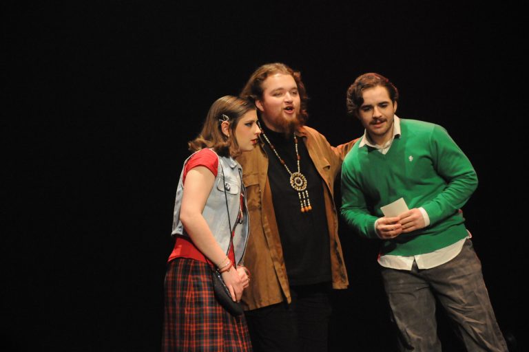 CULTURE. Les 16 acteurs étudiants de la troupe de théâtre L’Épisode, du Cégep Beauce-Appalaches, présentaient Détour infernal les 26 et 28 février à la Salle Alphonse-Desjardins. Ils ont réussi le pari de mêler rire et suspense, en plein cœur des années 1980, sur près de deux heures.
