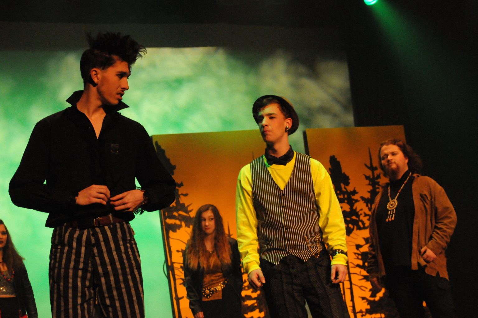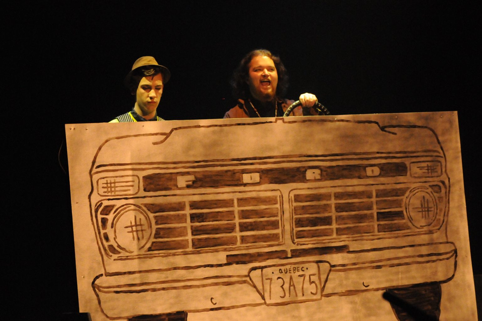 Harold Gilbert, auteur et metteur en scène, était de retour aux commandes. Privilégiant une approche cinématographique du théâtre, il souhaitait rendre hommage à la décennie où lui-même étudiait au cégep. Détour infernal faisait de nombreux clins d’œil au cinéma catastrophe… musique d’époque incluse !