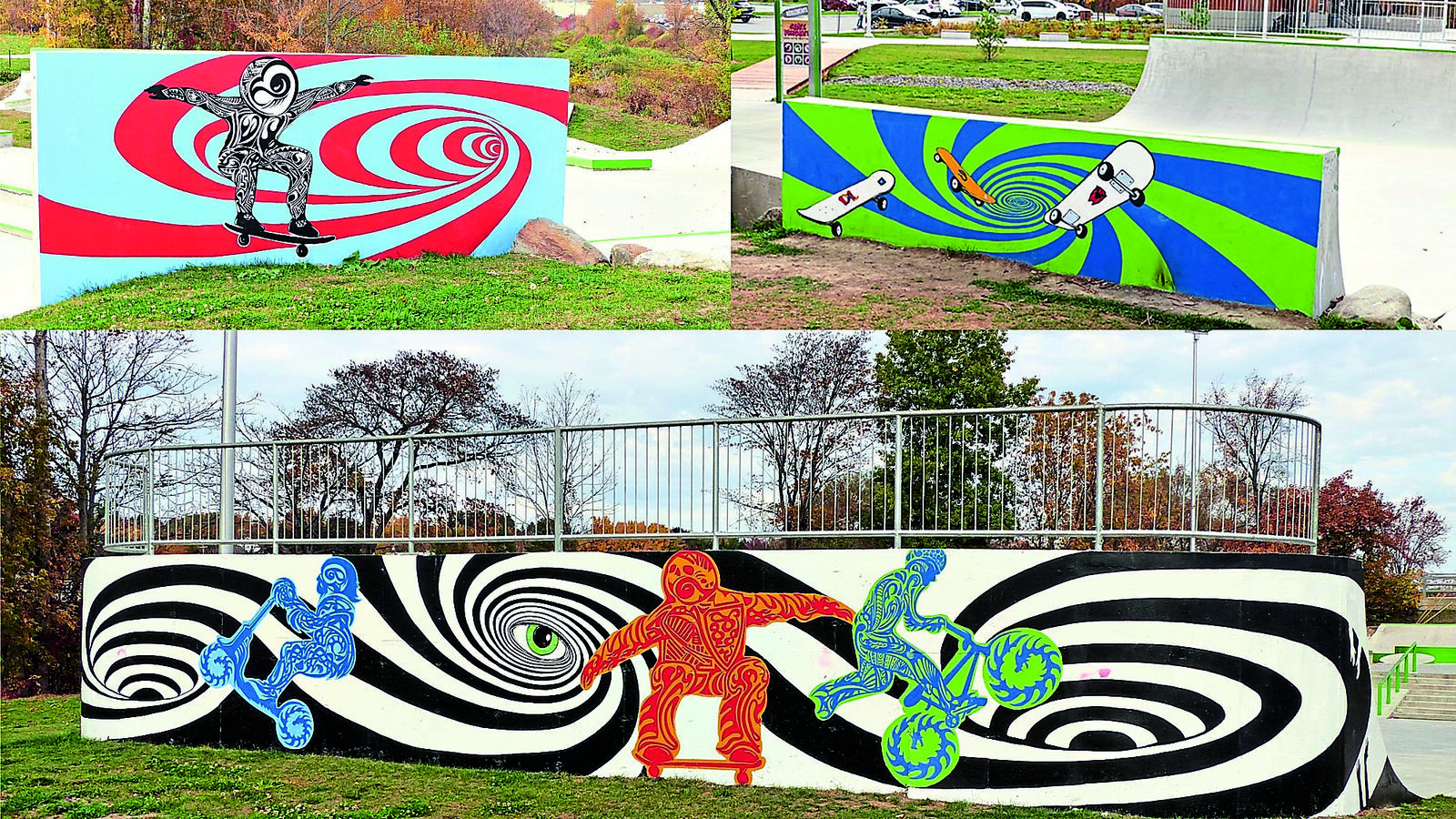CULTURE. Au cours de l’été, trois œuvres d’art ont été réalisées sur trois murs du parc de planche à roulettes (skateparc) situé à l’espace Carpe Diem. Le projet a été conçu dans le cadre du programme les Arts de la rue et de la politique culturelle de Ville Saint-Georges.