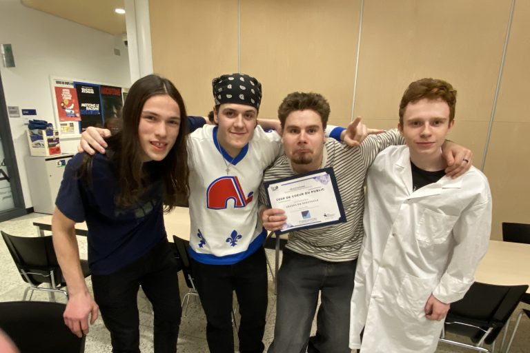 Le public avait également l’occasion de voter pour le Prix Coup de cœur de la soirée. Le numéro favori de la foule a été celui du groupe Les Colocataires, composé de Charles Barbeau (Saint-Georges), Olivier Bernatchez (Notre-Dame-des-Pins), Damien Chartrand (Sainte-Aurélie) et Mavrick Pomerleau (Beauceville). Celui-ci a repris une chanson culte du répertoire québécois, Passe-Moé La Puck des Colocs. « On ne pensait pas remporter ce prix. La compétition était très relevée. On est honoré que le public ait aimé notre numéro. C’est pour ça que l’on fait ça », avoue le quatuor. Le prix était assorti d’une bourse de 500 $.