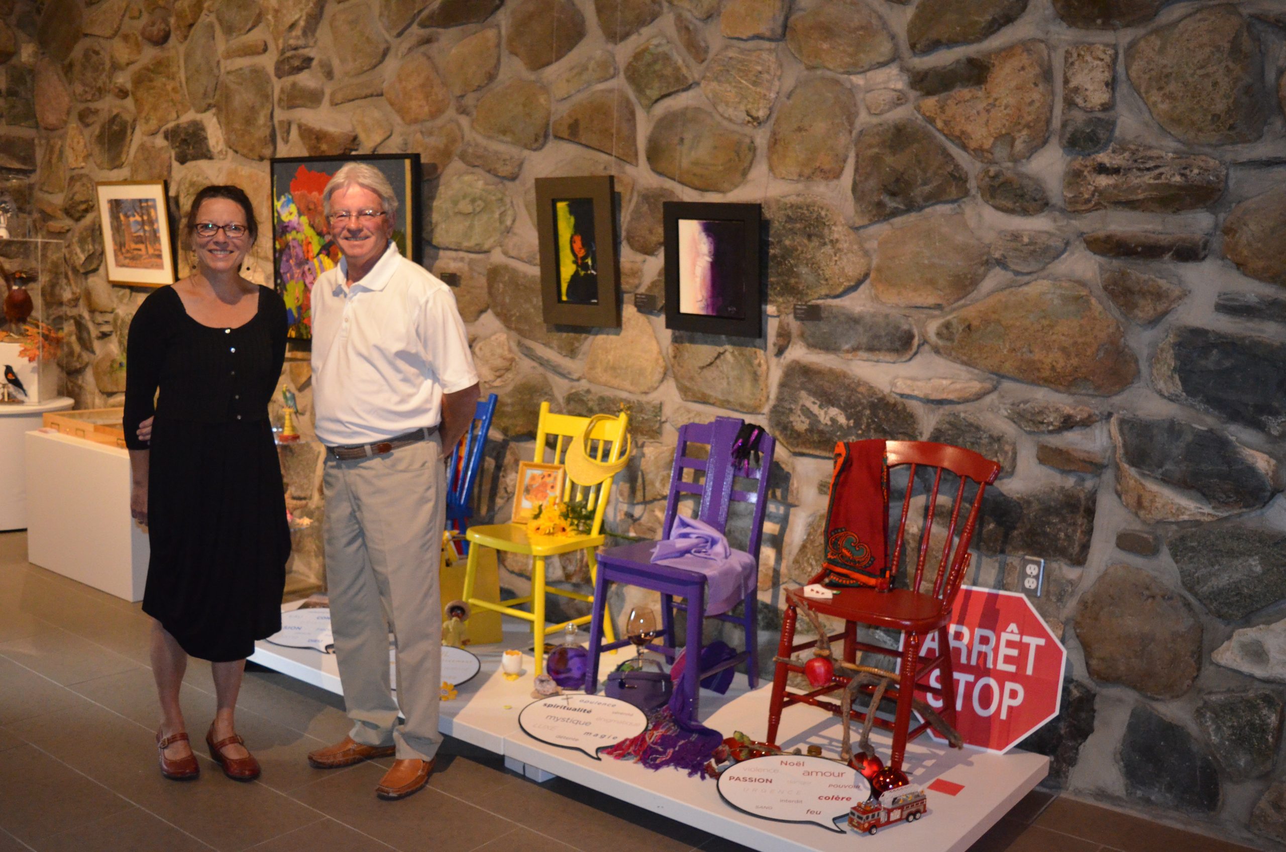 Dans la salle Pierre-Beaudoin, les visiteurs pourront admirer Rouge… et encore plus! de Denis Courchesne, peintre résident de Sacré-Cœur-de-Marie, près de Thetford Mines. Cette exposition présente une vingtaine d’œuvres hautes en contrastes, où le rouge et le noir prédominent. «Ce sont ses couleurs de prédilection. Ses ciels sont noirs, ce qui lui permet de magnifier la couleur et la lumière», précise France Doyon, qui représentait l’artiste lors du vernissage tenu le samedi 19 septembre.