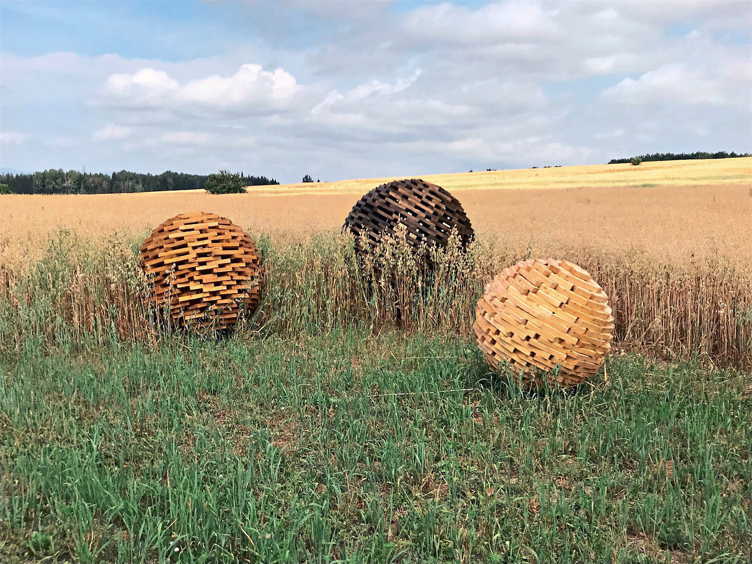 C’est une amie qui leur a parlé de Pays’Art, un projet qui vise l’installation d’œuvres éphémères dans la campagne de Charlevoix. Ils ont alors décidé de présenter une proposition intitulée Bio/Sphères, un ensemble de trois sphères composées de bois de construction recyclé.