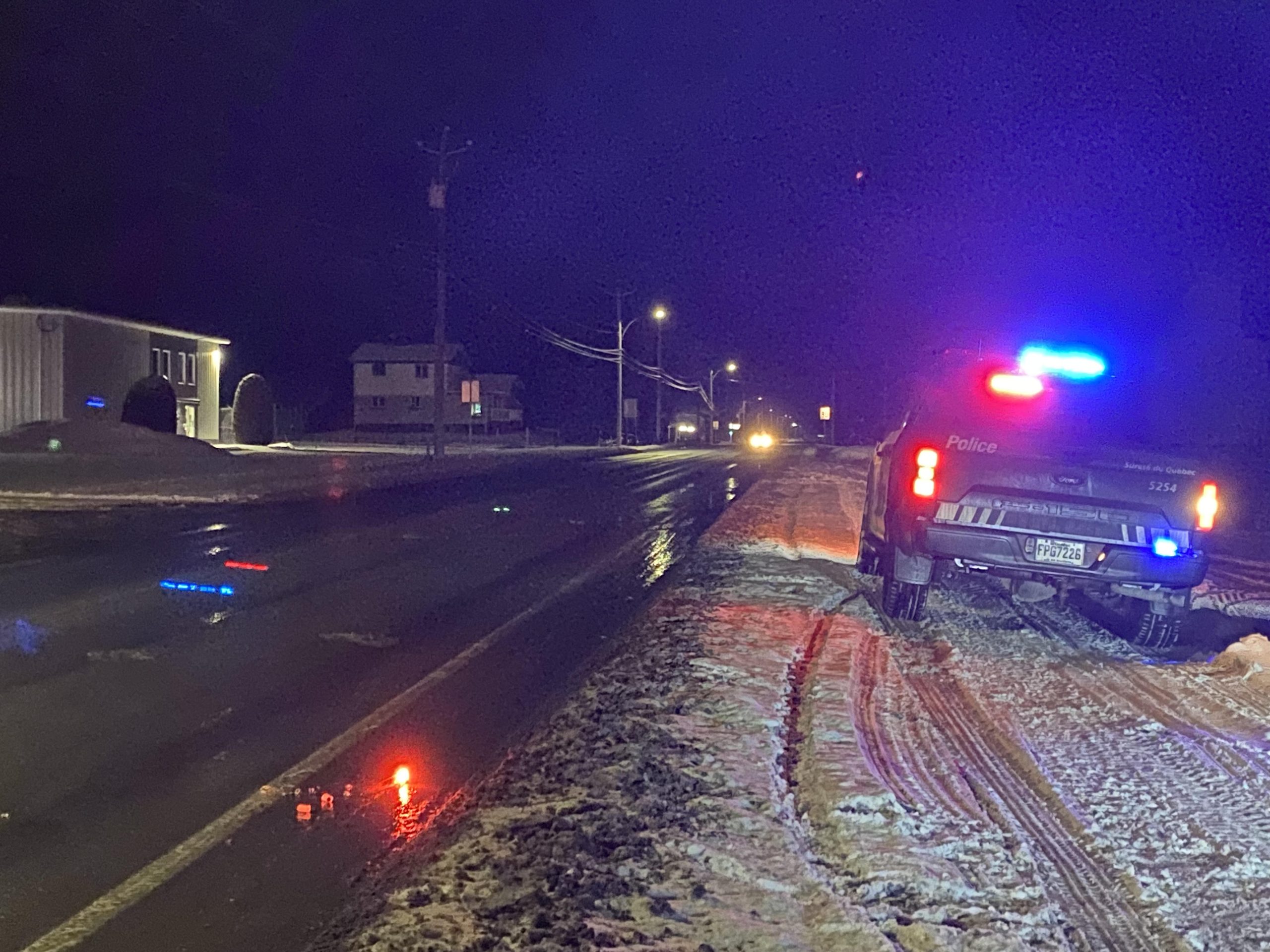 Selon l’agente d’information de la Sûreté du Québec, Catherine Bernard, deux personnes prenaient place sur le véhicule. Ceux-ci ont voulu traverser la route 204 à partir d’un terrain privé, mais ils ont percuté un poteau électrique.