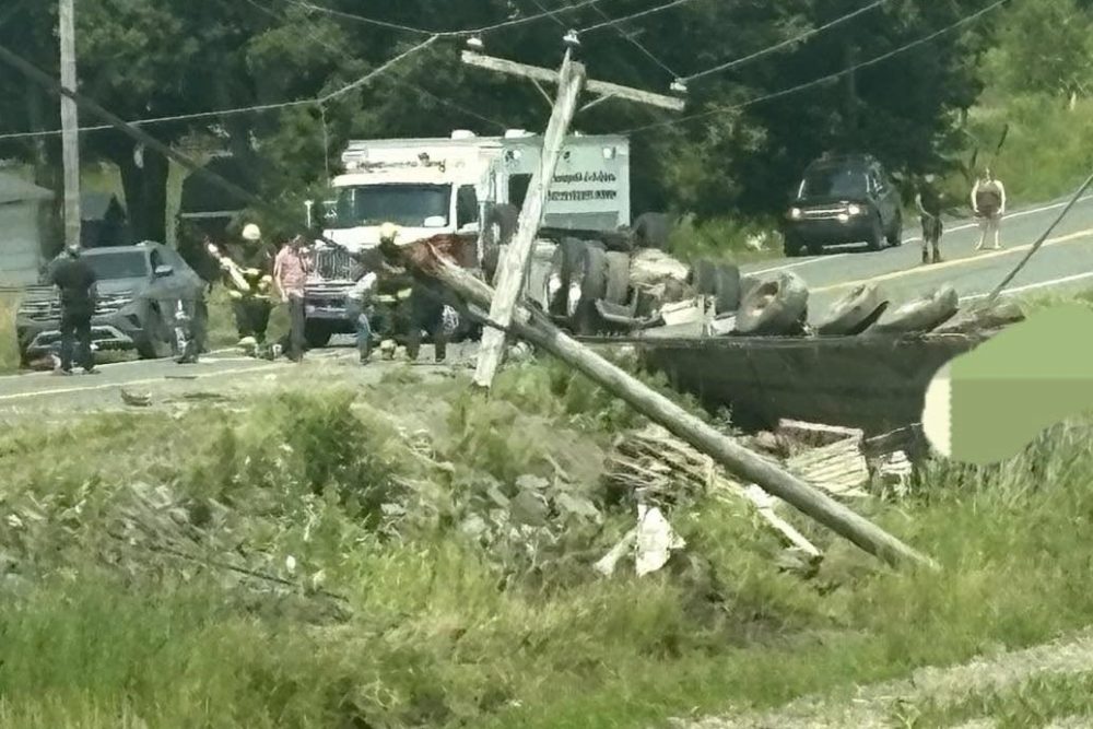 Ce camionneur circulait seul sur la route 108 en direction est. À l’approche du 11e Rang Nord, son véhicule empiète sur l’accotement. Le véhicule se retrouve dans le fossé et percute un poteau électrique, avant de se renverser sur son toit.