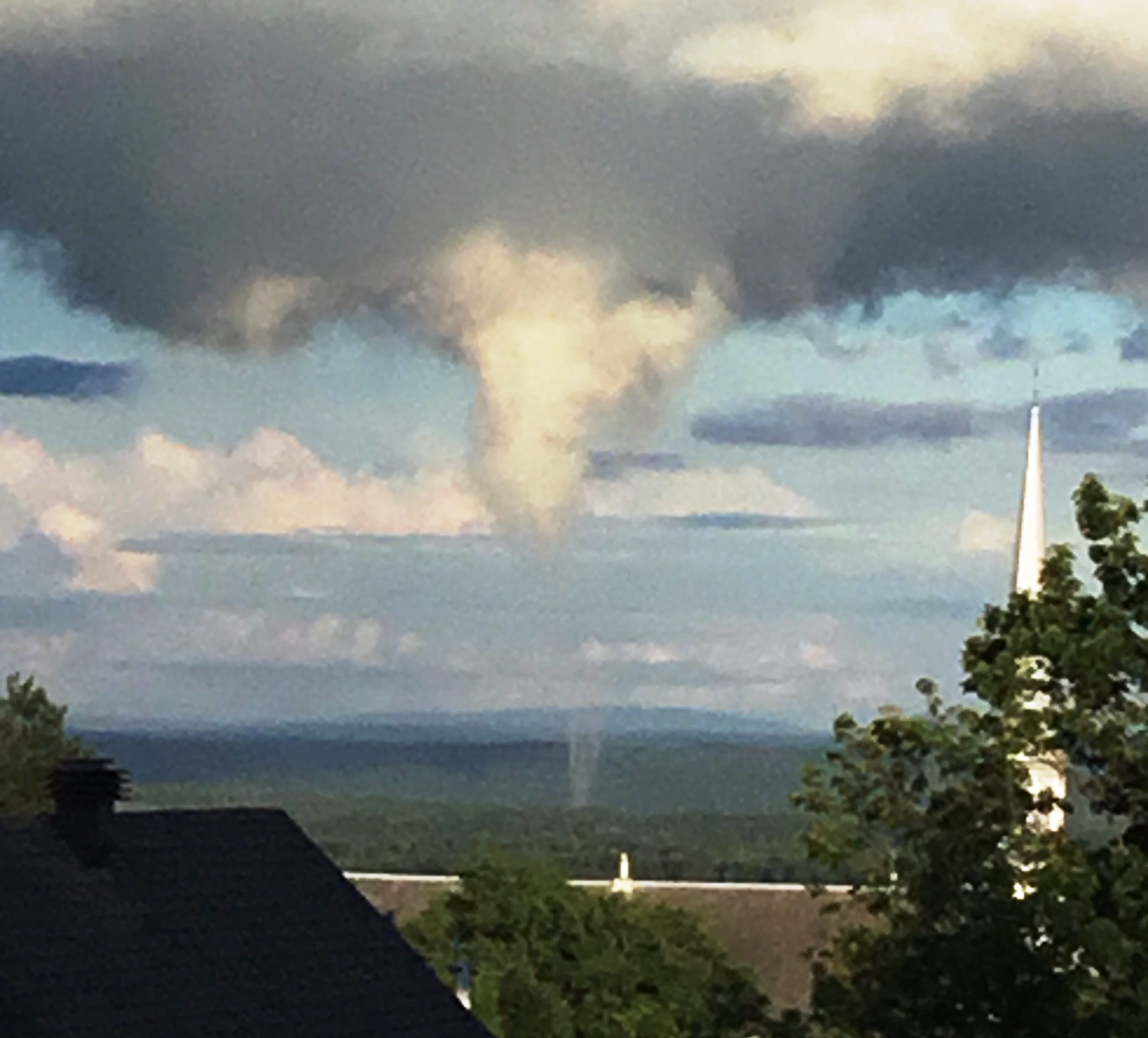 M. Lamontagne était à l’extérieur de sa résidence lorsqu’il a vu apparaitre le phénomène près du secteur de la station à Sainte-Sabine et qui se dirigeait lentement vers Saint-Camille. «Nous étions dehors et notre patio est quand même assez haut par rapport au village. Il faisait très beau et je vois une forme particulière qui descend du nuage. J’ai demandé tout de suite à mon épouse d’aller chercher ma tablette pour que je puisse filmer ça. Ça bougeait vraiment lentement. Le tout a duré environ deux minutes et demi.»