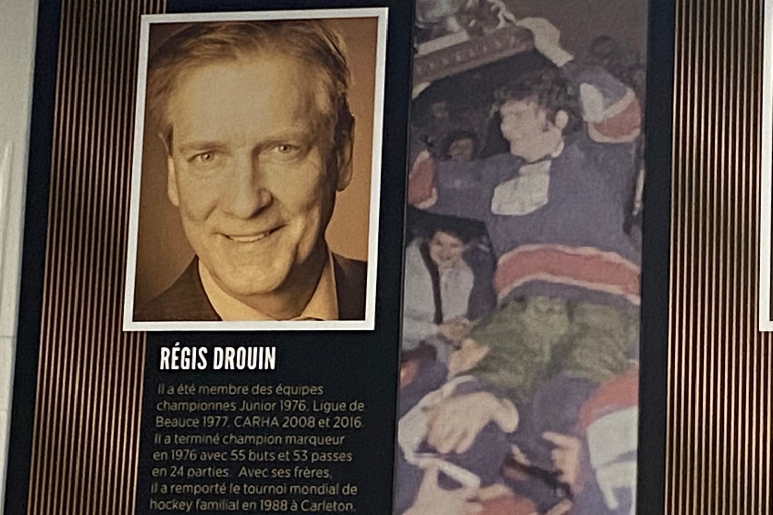 Évoluant maintenant dans une ligue de garage, Régis Drouin donnait beaucoup de temps à l’organisation de compétitions, dont le Tournoi provincial des vétérans de Saint-Prosper. Il avoue sa surprise de figurer au mur des célébrités sportives.